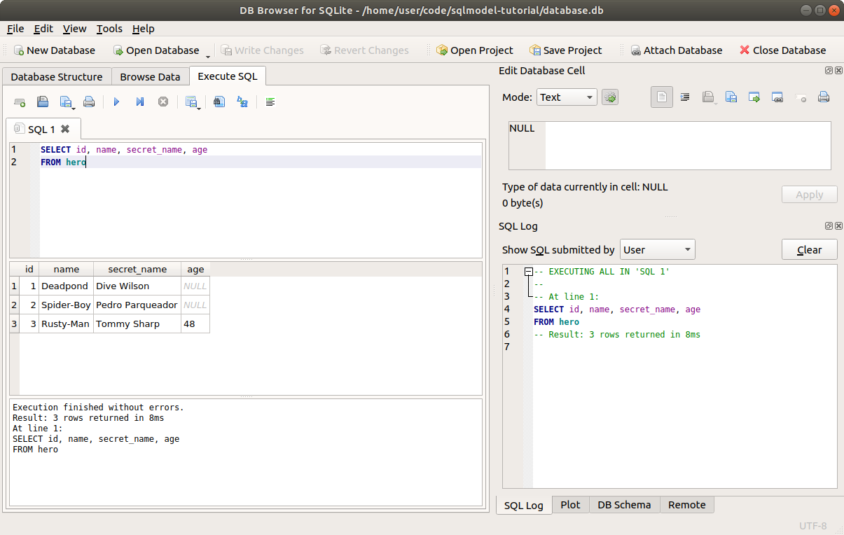 Now let's do the same query to read all the heroes, but with SQLModel.